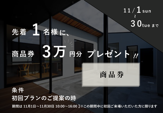 11月末まで【 一棟限定で商品券3万円分プレゼント 】